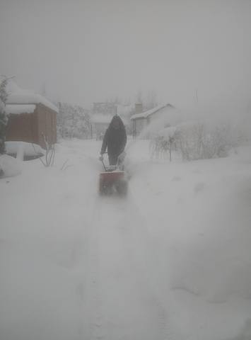 Нам до школы час езды с дачи, выехать бы для начала отсюда  снегоуборщик уже не справляется. Был перерыв в снегопаде полчаса и опять по новой..