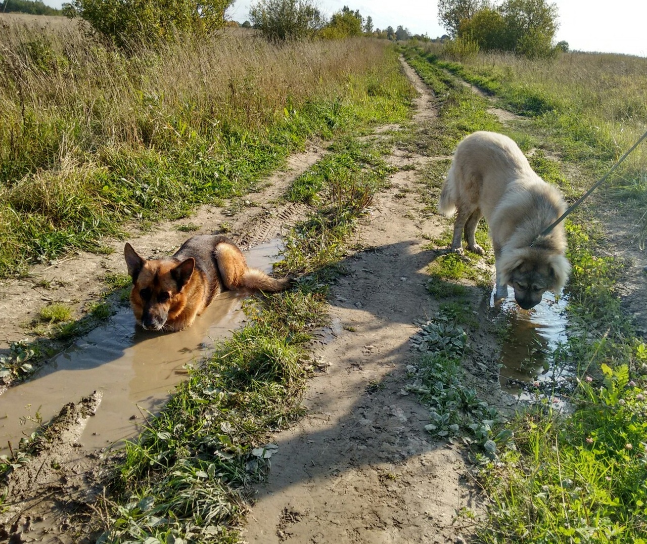 Очень, очень приятно видеть знакомое Мурзино лицо! А Нюша какая красавица! Такой летний день в сентябре достался вам для прогулки