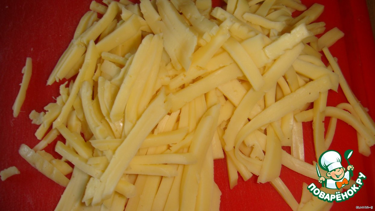 Сыр тоже нарежьте как мясо ломтиками.