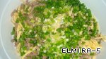 выкладываем слоями , промазывая каждый слой, кроме первого, майонезом, мелко нарезанные: