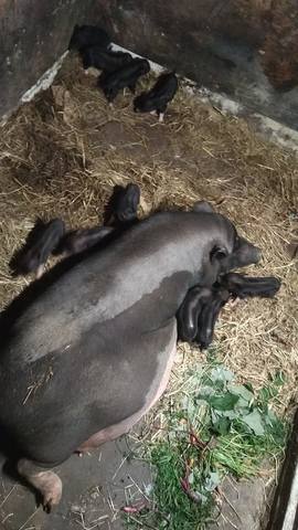 Ну вот такой один из опороса, не растет и всё. У них бывает такое, но редко. Обычно это те поросята, которые выходят после выхода последа. Последыши еще их называют. Вот он из таких. И как раз так и получаются микро пиги всякие