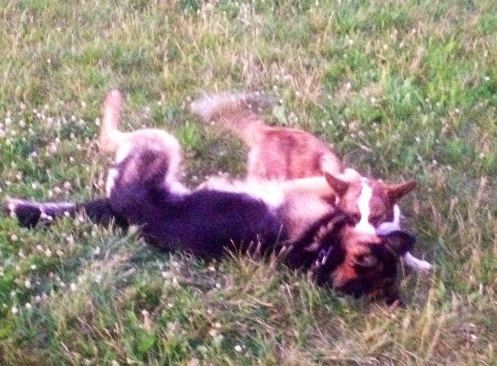 А еще нас почти сожрали очень маленькие овчарки  (это самая мелкая из двух девиц у ЗакусАя, она решила что мы с Лисом очень удобные развивающие игрушки)